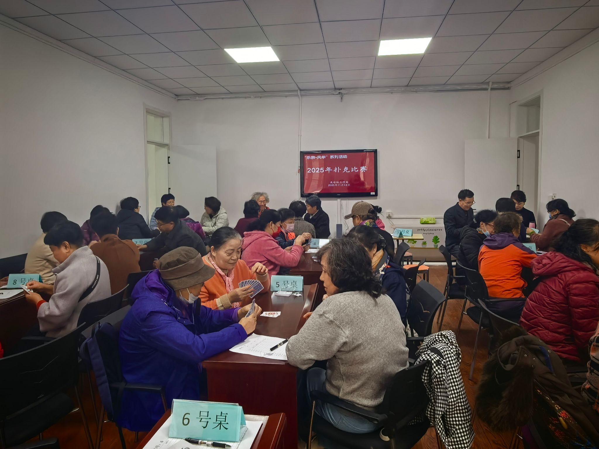 11 月 12 日上午 9 点,2025年离退休教职工扑克比赛在离退休工作处老干部活动室顺利举行。此次活动旨在丰富离退休教职工文化生活、搭建温馨交流平台,比赛吸引了50余名老同志参赛。