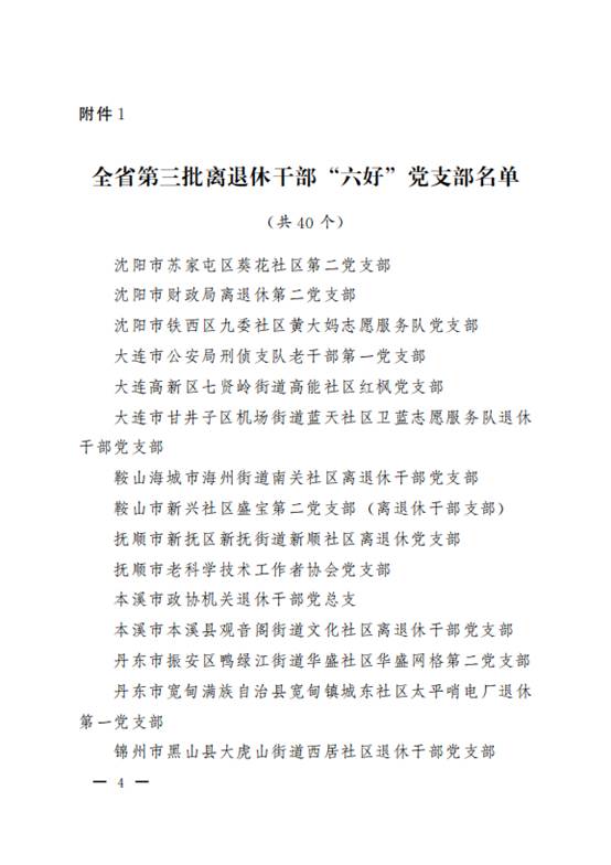 为深入推进新时代离退休干部党的建设工作,强化基层党组织政治功能和组织功能,辽宁省委老干部局自2023年起开展“六好”党支部创建,围绕“组织设置好、班子建设好、党员队伍好、学习活动好、作用发挥好、制度坚持好”的“六好”标准严格遴选,此次第三批表彰名单的公布,正是对各优秀离退休干部党支部建设成果的肯定。